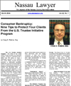 He has covered a variety of topics including New York bankruptcy law and procedure; bankruptcy legislation; the new bankruptcy laws; Long Island bankruptcy practice; the interaction of bankruptcy law on personal injury cases; bankruptcy and matrimonial rights; issues in bankruptcy court including the meeting of creditors, bankruptcy motions, adversary proceedings and bankruptcy litigation; profiles on bankruptcy court judges; tax consequences of filing for bankruptcy; bankruptcy issues with sub-prime mortgages; and re-establishing credit after bankruptcy.