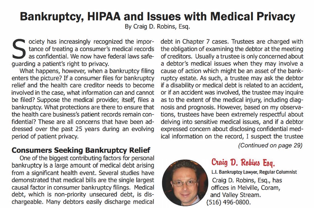 Full Story »  | Bankruptcy, HIPAA and Issues with Medical Privacy