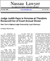 Judge Judith Kaye is Honoree at Theodore Roosevelt Inn of Court Annual Dinner. New York's Highest Judge Honored by Local Attorneys